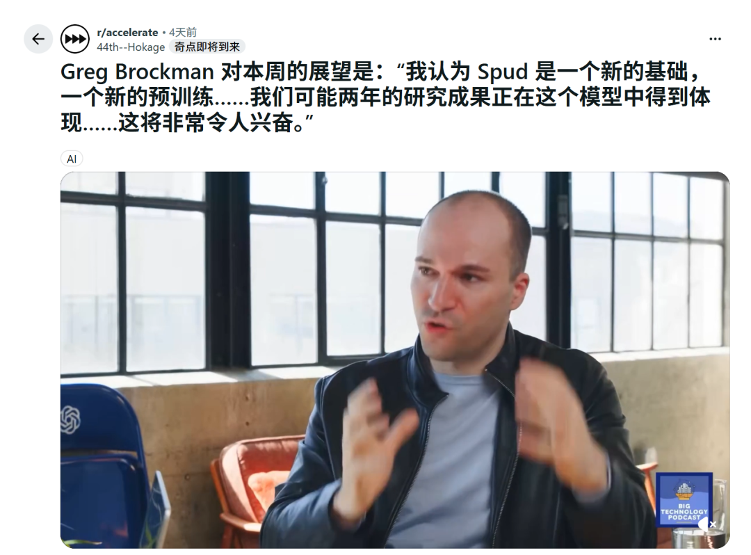 此外,有国外科技媒体报道,GPT-5.5也就是Spud「将是更智能的预训练模型」。