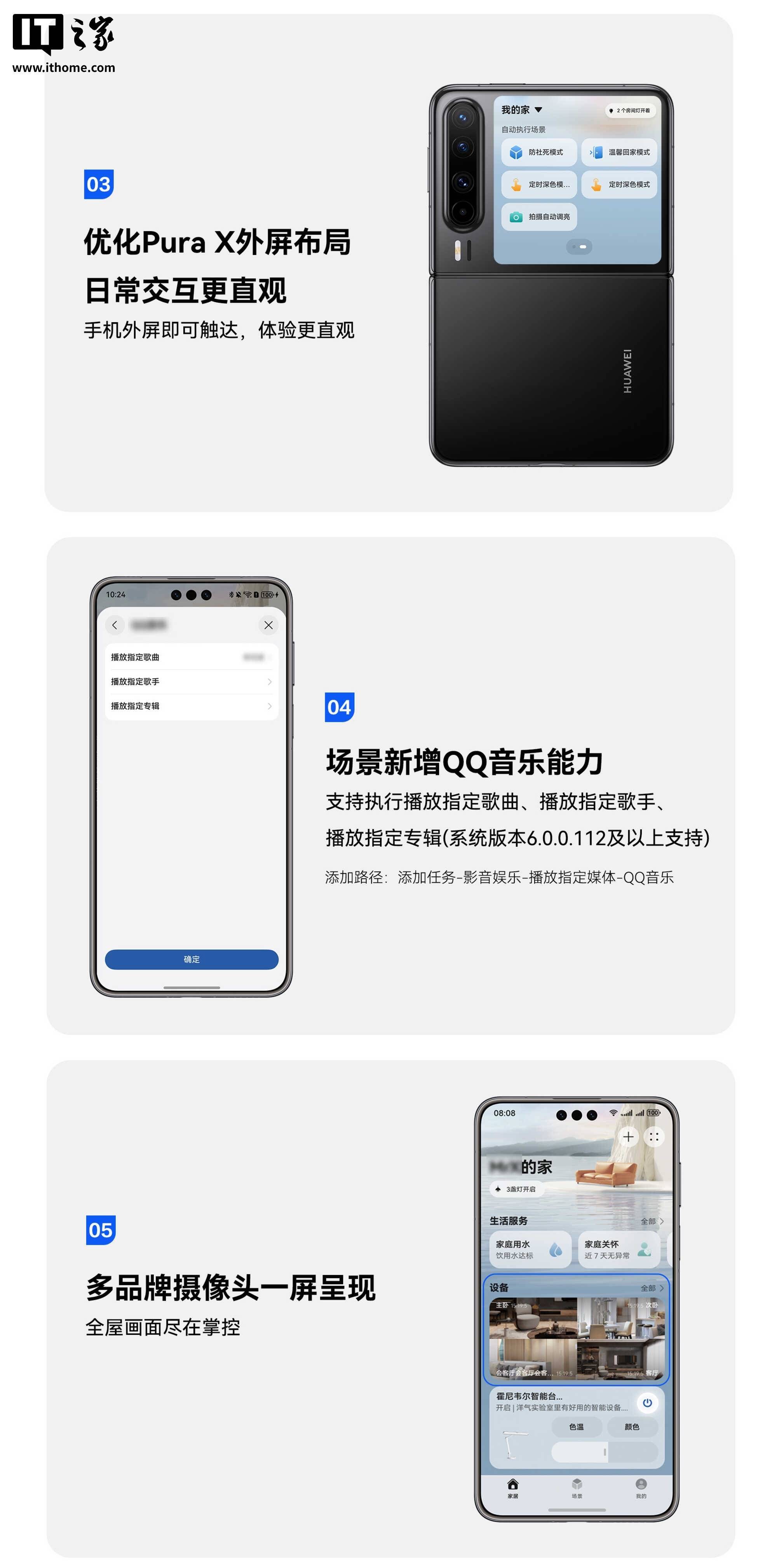体验优化1、Pura X 外屏布局优化,设备、场景卡片快速可视可控